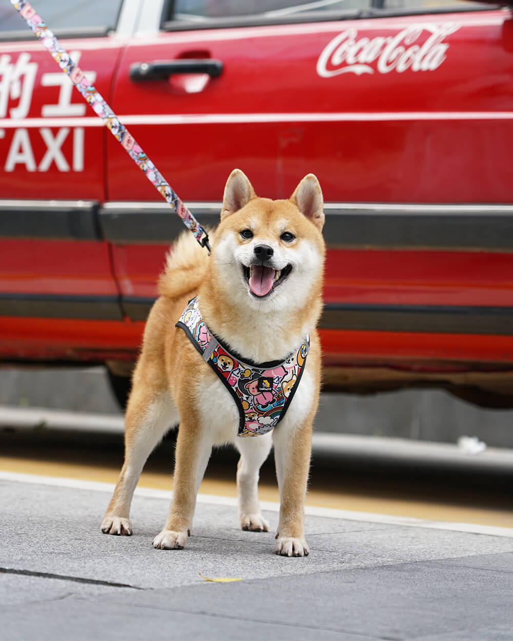 Bella & Pal × PJai & Friends 聯乘款胸背帶,舒適和設計一樣重要。輕盈透氣網布,快速魔術貼和插扣,穿脫輕鬆;夜間反光邊條,確保看得見;配上 1.5 米防纏繞牽繩,一套就夠,舒服又方便。